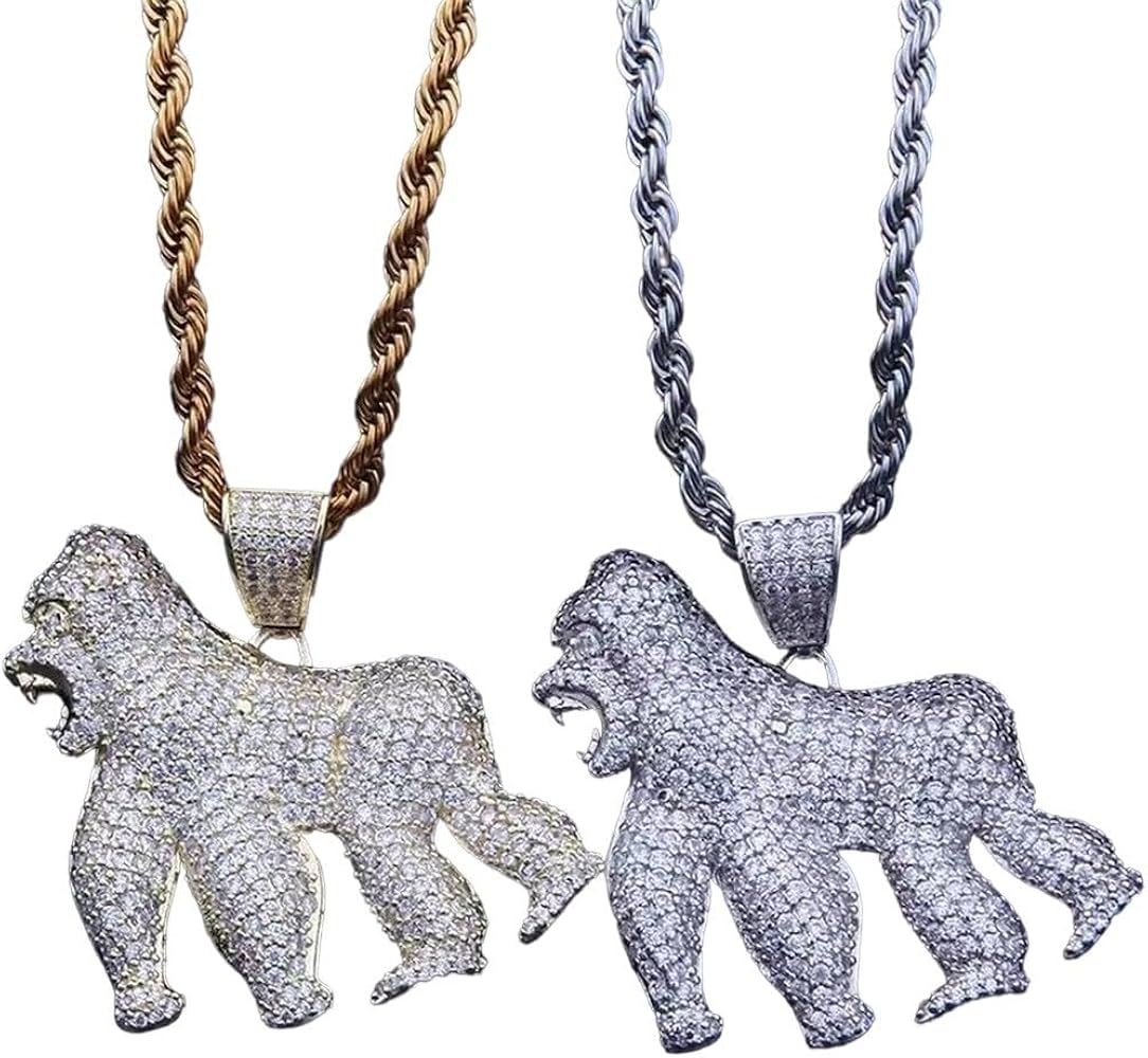 New 2024 Hip Hop Animal Gorilla Inlaid Full Ice Crystal Cubic